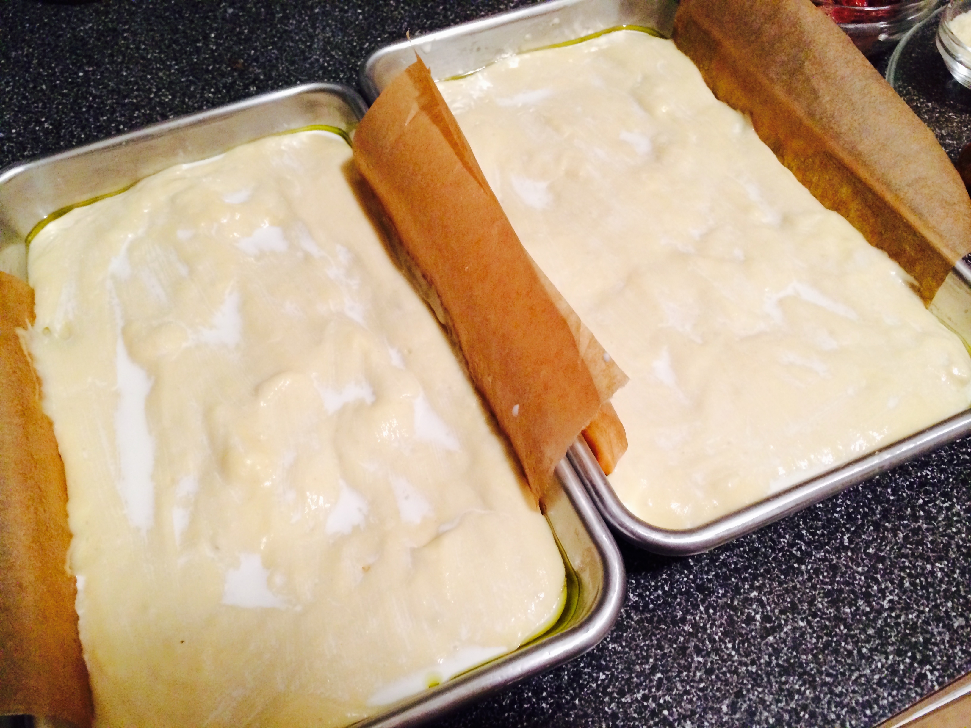 so far, i’ve been very pleased with the versatility of the ciabatta bread dough recipe, i posted a couple of weeks ago. this weekend, i used it to make two types of focaccia. it’s pretty simple just follow the ciabatta recipe in the link right through to the step of putting it into the pan and for the amount of dough in the recipe you can use a quarter sheet pan or two eighth sized sheet pans (sometimes called mini-sheet pans).