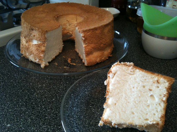 angel food cake is probably the cake that i missed the most. i’m not a big eater of eggs, so i find the prospect of a dozen leftover egg yolks daunting. of course extra yolks usually become chocolate pots de crème or frozen custard. after lots of hand wringing, i decided to try dried egg whites instead of fresh. i’m pretty happy with the result.