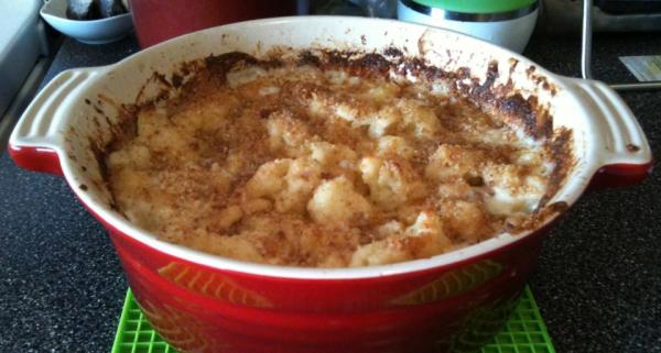 cauliflower makes a perfect substitute for elbow macaroni. 4 kinds of imported cheeses didn’t hurt, either.