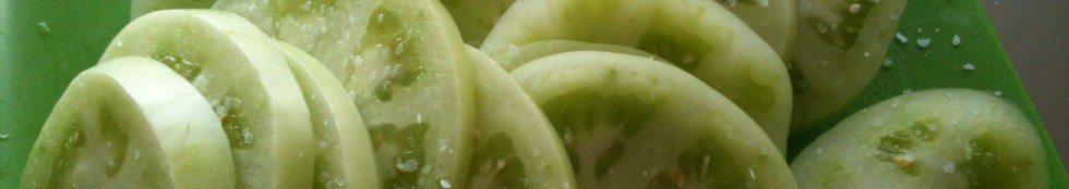 yesterday, i bought a couple of pounds of green tomatoes and immediately started thinking about the crunch and tartness of fried green tomatoes. my mother’s mom, my “nana”, sometimes made them for us when her garden produced more tomatoes than she could eat or give away. i’m not sure if her recipe was a traditional south carolina one, but she used self rising flour to dredge her salted sliced tomatoes, then dipped it in a mixture of milk (sometimes buttermilk) and beaten egg (with a few drops of hot sauce) and finally coated the tomatoes in a mixture of bread crumbs and fine white cornmeal seasoned with salt, pepper and garlic powder.
