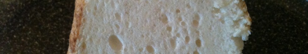 it’s a dull dark lazy rainy afternoon and boredom sent me looking for adventure in the kitchen. what do i spy, but a can of dried egg whites. angel food cake, that’s the ticket. i’ve tried baking with the dried egg whites before but still haven’t settled on the best method of reconstitution before whipping. today i dissolved them in warm water and let the whole mess sit for while before stir them up. while i waited for the egg whites to soak, i measured up my flour, superfine sugar, salt, almond extract and cream of tartar. the egg whites whipped up nicely into stiff peaks in the kitchenaid, but it is harder to gauge when they are in danger of getting grainy. the cake’s all done but i forgot to make a topping. looks like a nice chocolate cherry marnier sauce and homemade chocolate chocolate chip ice cream will fit the bill nicely.