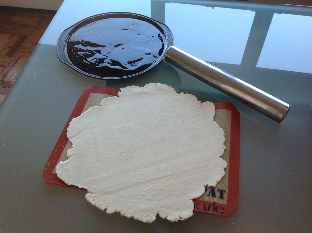 this morning, before i headed out to vote, i remembered that i had the mix and figured it would make a nice lunch after voting. here’s what i did with half of the prepared dough. tomorrow, i plan to roll out the remaining dough and make crackers with it. the mix was easy to use and the crust had a nice crunch. i liked it as much as the dough that i make myself, from scratch using cup4cup, but i can certainly see where having the mix, on hand, would be convenient for weekend travel or cooking as a guest in a non-gluten free kitchen.