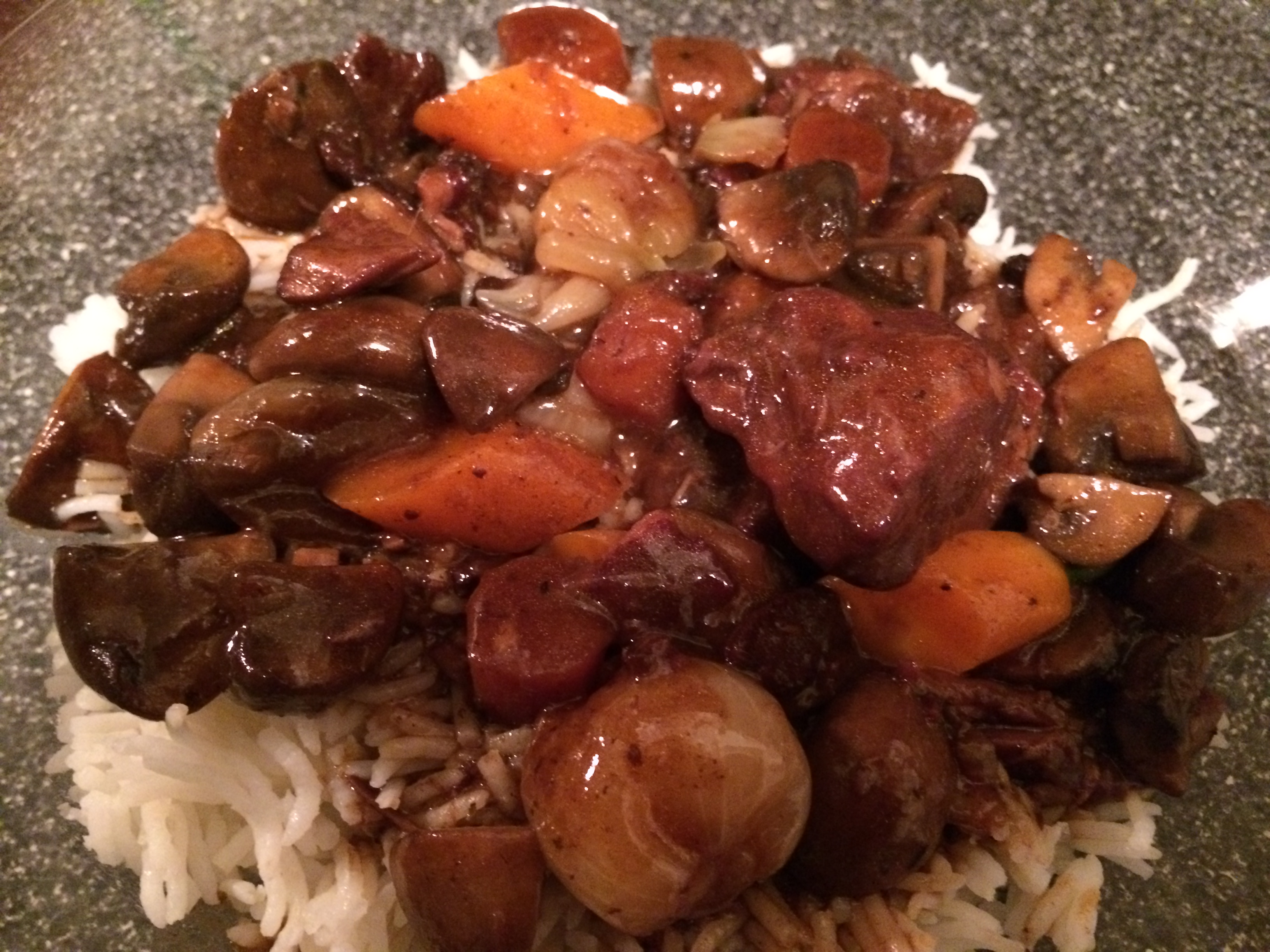 julia child’s boeuf bourguignon was one of the first “fancy dishes” that i’d ever cooked for my family as a kid. later, someone pointed out to methat it’s just stew with wine in it. I’ve made the dish enough times to have made changes to simplify it. there are still lots of steps, but i have eliminated most of the clean out the pot type steps in the original recipe.