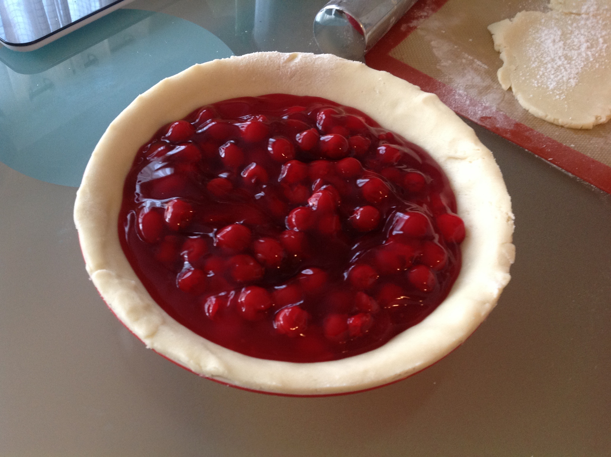 there wasn’t only chicken pot pie for pi day, we also had a quick cherry pie. normally, i’m a fruit pie purist and like to use fresh fruits to be sure the starch used for thickening is gluten free, but i really wanted cherry pie and it’s not cherry season.