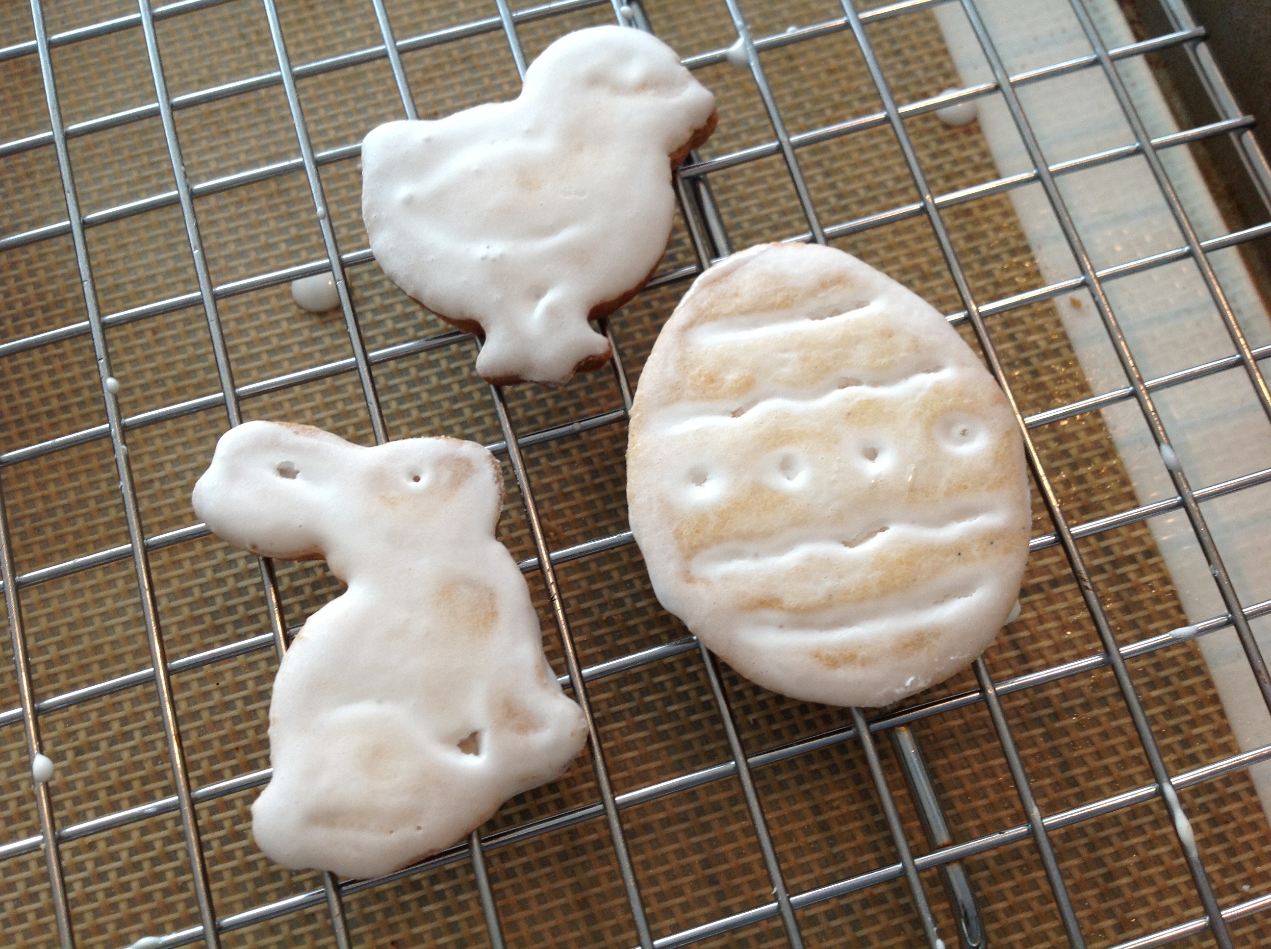 i used my brand new bunny, chick and egg plunger cutters in keeping with the holiday. i also whipped up some royal icing for glazing some of the cookies.