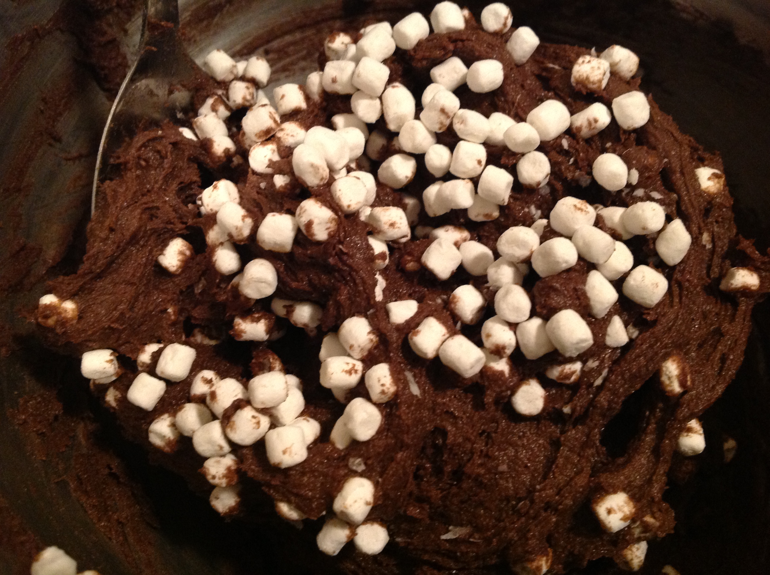 - Preheat oven to 375 degrees, with racks in center of the oven. In a medium bowl, whisk together flour, cocoa powder, cream of tartar, baking soda, and salt. In a stand mixer, beat butter and sugar on medium speed until light and fluffy, about 2 minutes. Scrape down sides of bowl. Add eggs one at a time and beat to combine. With mixer on low, gradually add flour mixture and beat until combined. By hand, gently stir the mallow bits into the dough