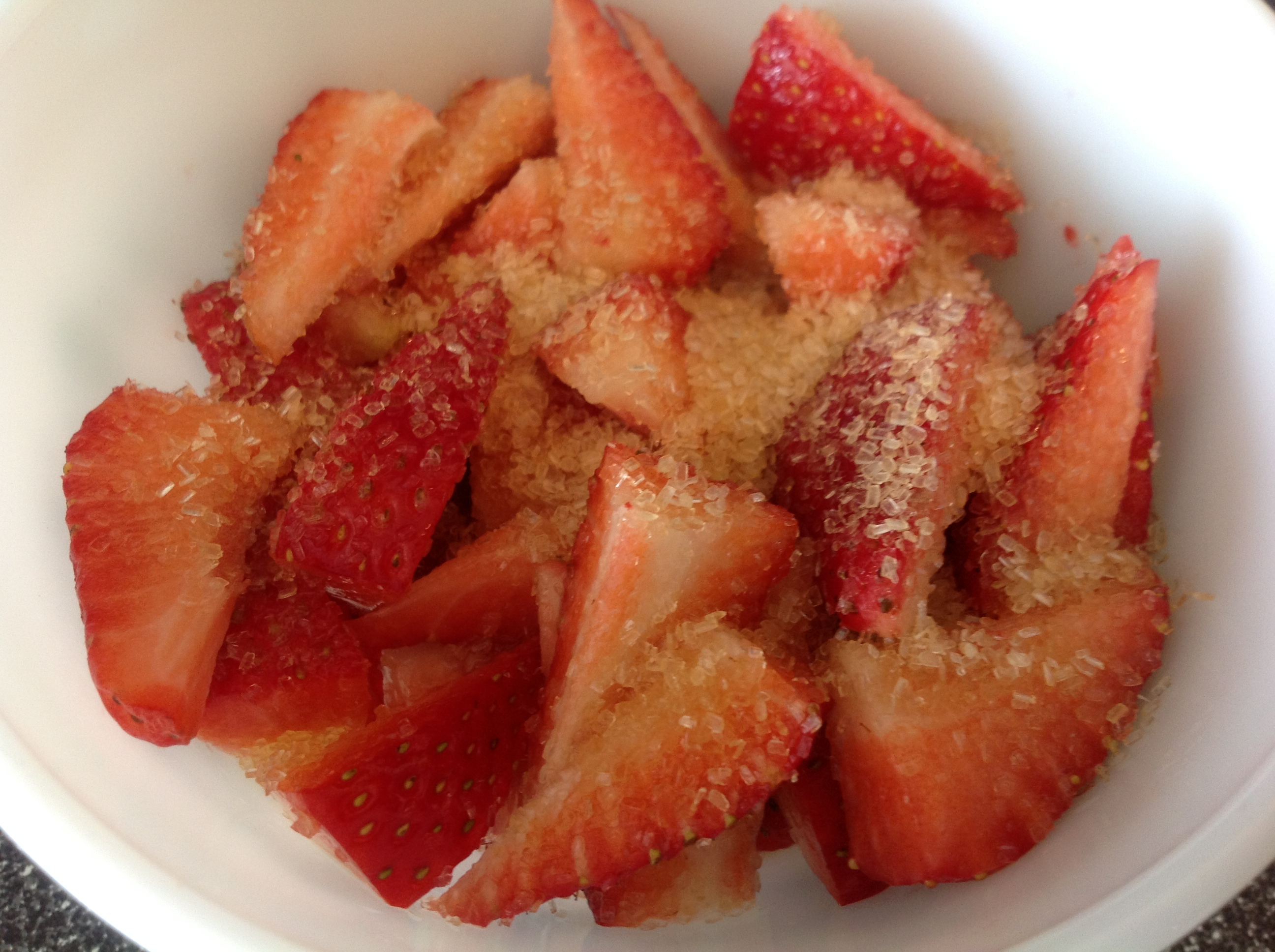 Strawberries – Remove the stems from the strawberries. Slice into thin slices. Combine with the sugar, pepper and Grand Marnier in a small bowl. Set aside at room temperature to macerate (which means that the sugar will soften the strawberries and help release their juices).