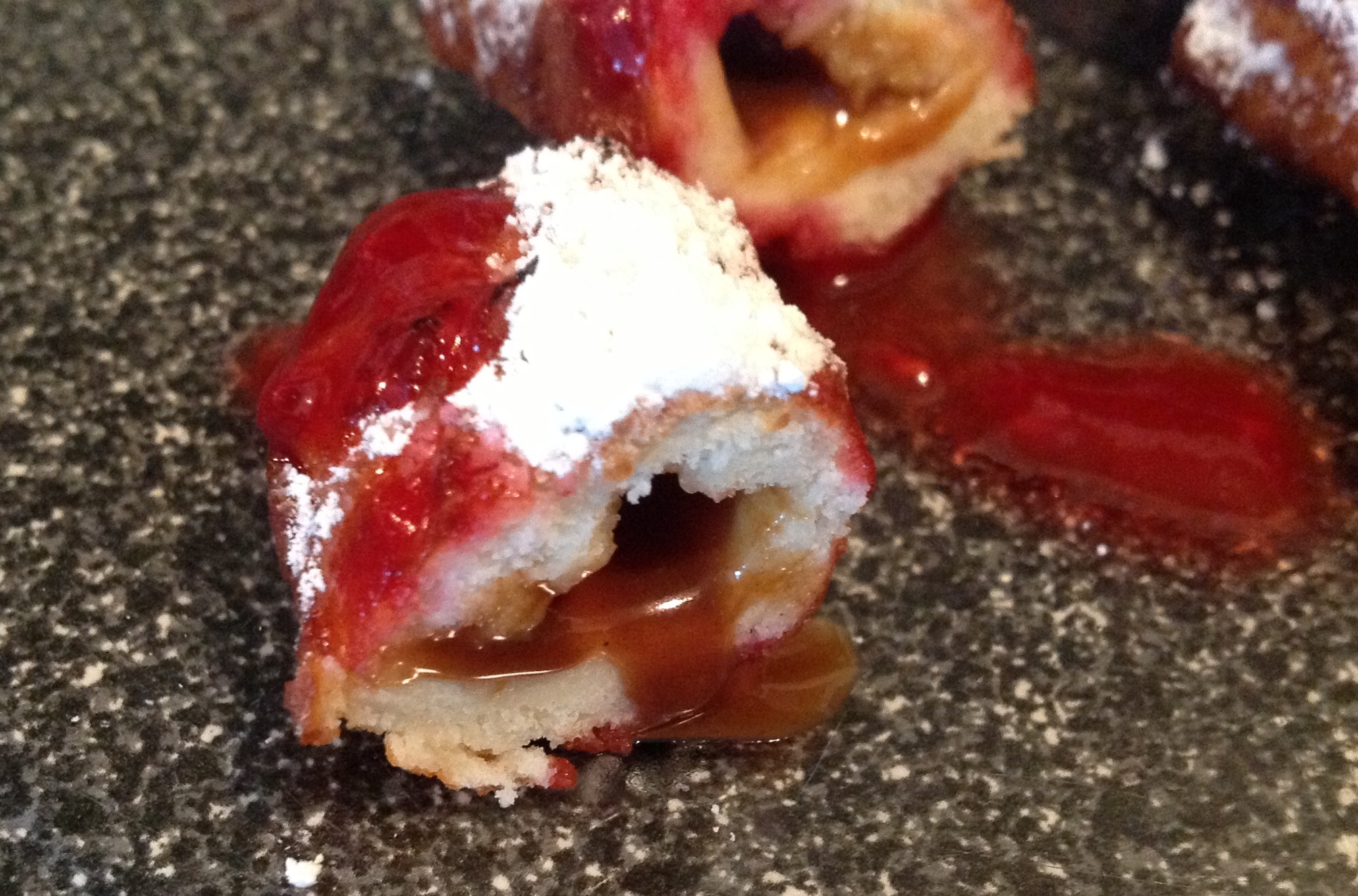 sometimes the universe allows several great events to converge on a single day. today, is national doughnut day, i had leftover raspberry sauce made by my friend Cathy and i found chocolate dulce de leche in the supermarket.