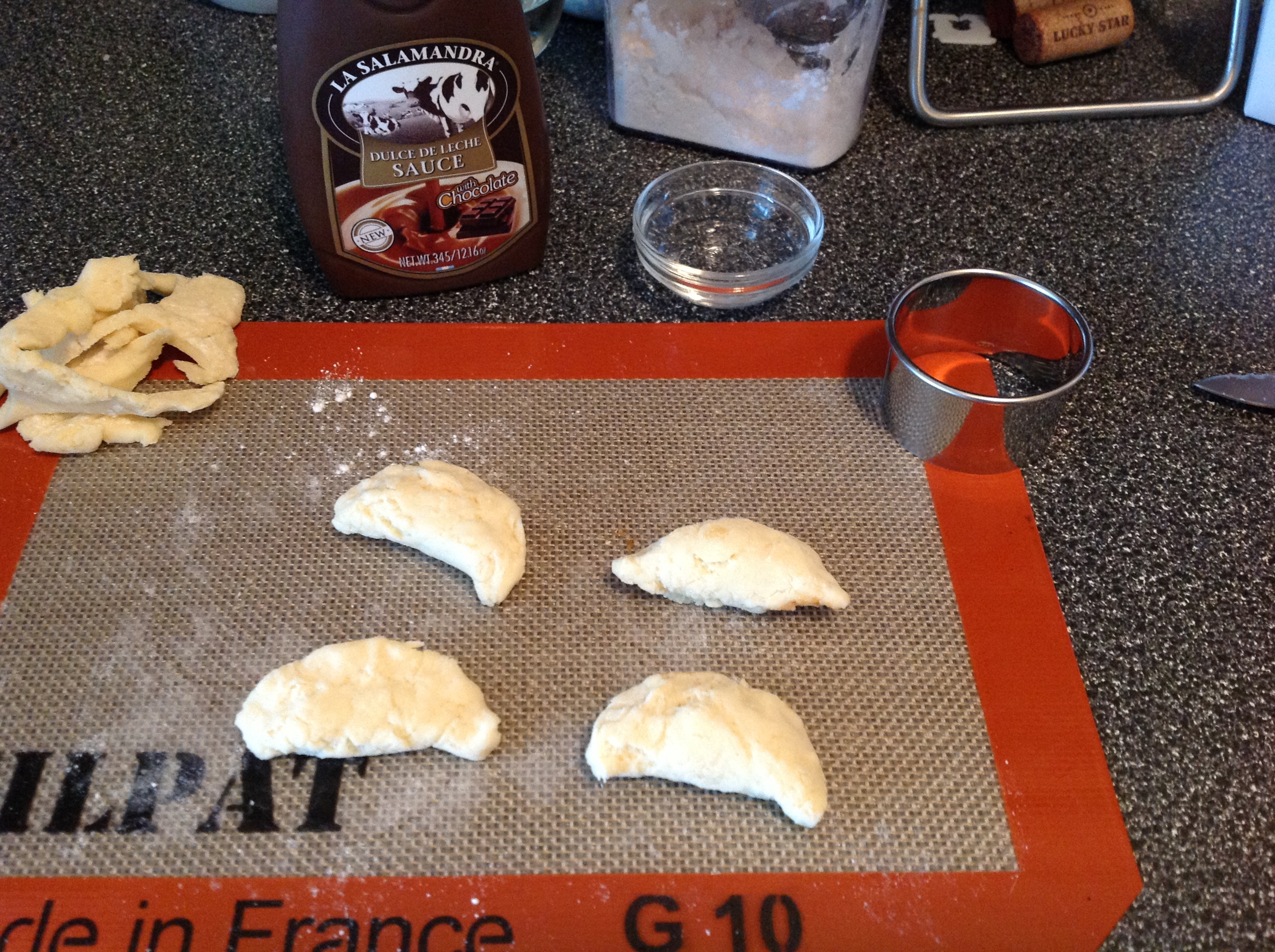 i wanted to make the fastest, easiest donuts that i could and that meant beignets. if you’re in a big hurry, you can have these made in just over 2 hours. you’ll find the link for the yeast raised beignet recipe here. as you’ll see in the photos, i first tried filling the beignet with the dulce de leche,