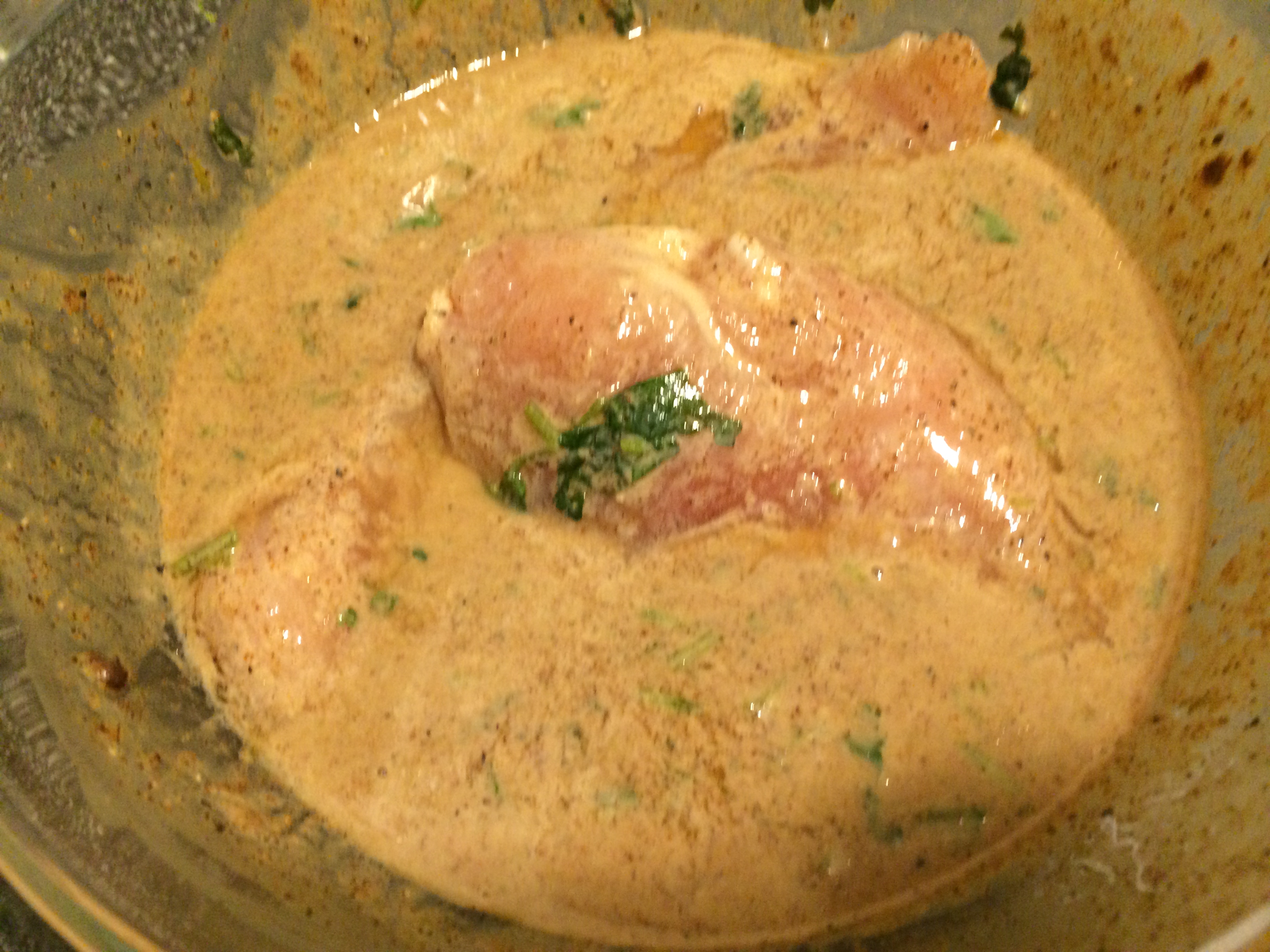 i remembered a whole brown butter roasted cauliflower, that i saw on Ruhlman’s blog, a while back, and then i looked to see what else i had to use up. There was buttermilk and that’s when i thought “marinade”