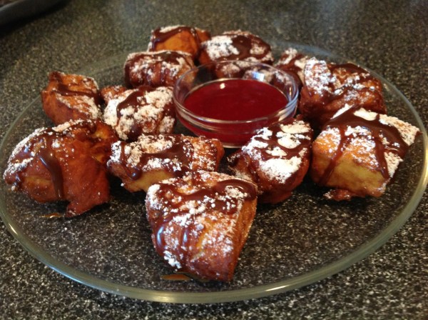 chocolate dulce de leche beignets with mrs cathy’s raspberry sauce